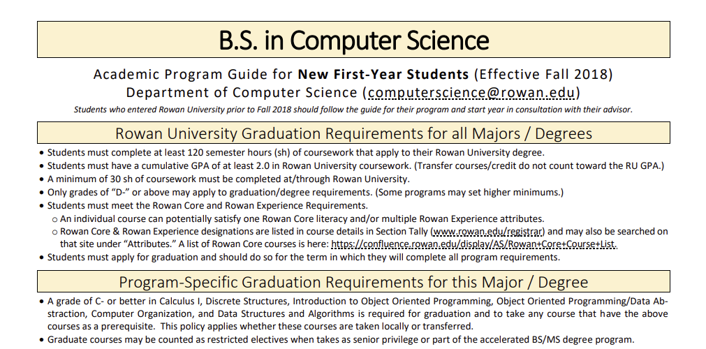 The BS Program Guide containing requirements to fulfill the major and suggested course sequence.